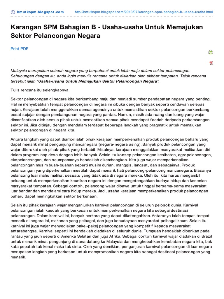 Karangan Spm Bahagian B Usahausaha Untuk Memajukan Sektor Pelancongan Negara Pdf